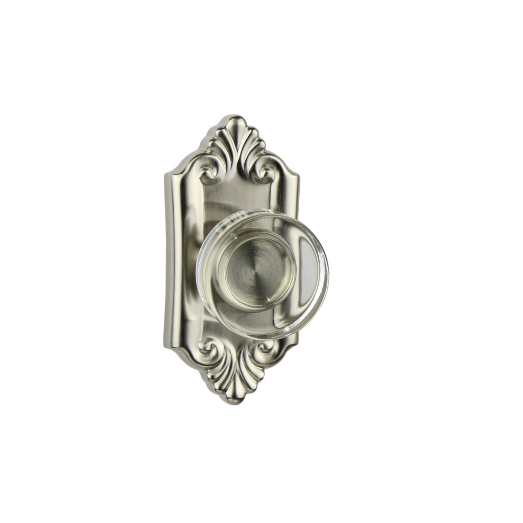 - Round opal crystal knob, shown with Verona small plate in satin nickel